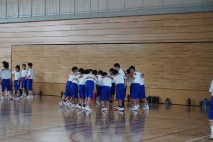 生徒たちは、試合前に円陣を組んで気合いを入れています。
