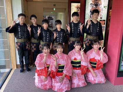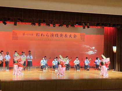 曳山会館で開催の「おわら演技発表会」に、小中高合同で出演しました。