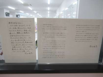 昼頃、柴田理恵さんから八尾中学生へのお礼の手紙等が届きました。先日、送った全校で歌った校歌、そして柴田理恵さんのお母様へCDを届けたお礼の手紙でした。