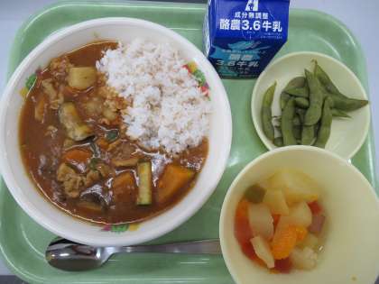 給食ではカレーのときに麦ご飯であることが多いですが、これは栄養バランスを考えてのことです。ビタミンや食物繊維を多く含む麦ご飯で今日の蒸し暑さも乗り越えましょう。