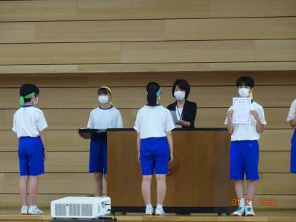 記念すべき第1回体育大会の結団式を行いました。校長先生から実行委員長、実行委員に任命書が手渡されました。