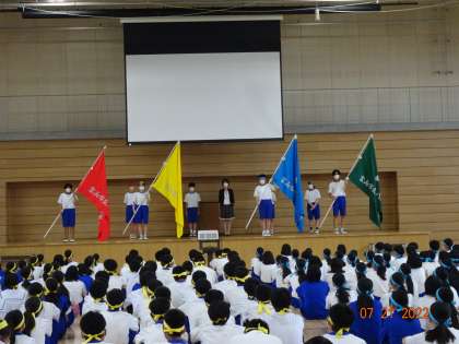 各団の団長、副団長の承認後、校長先生から各団長に新しくなった団旗が手渡されました。