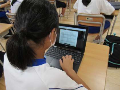 まずは、デコレーション係です。chromebookを活用しながら、今後の予定、下絵等の確認中です。
