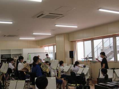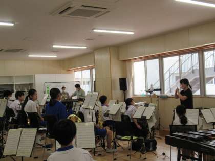 吹奏楽部は、講師の先生が来校され、レッスン中です。