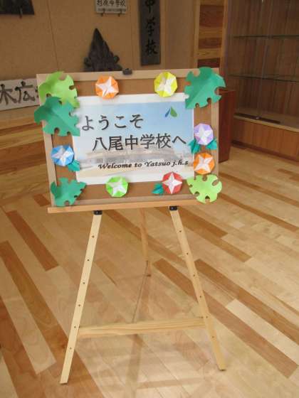 本校では、素敵なウエルカムボードがお客様をお迎えしています。
