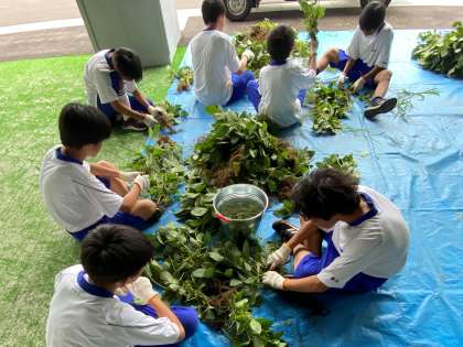昨日、部活終了後、枝豆収穫をしました。