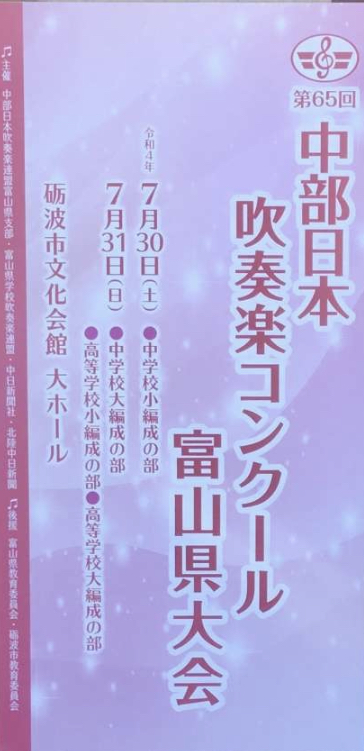吹奏楽部は、本日「第65回中部日本吹奏楽コンクール富山県大会」に出場します。
