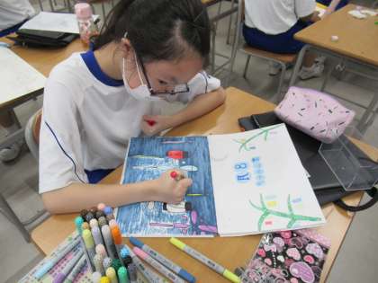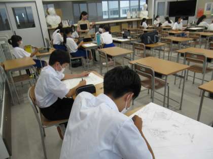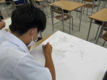 美術部は、青少年美術展等の展覧会への出品に向けて、イメージ図を描いています。