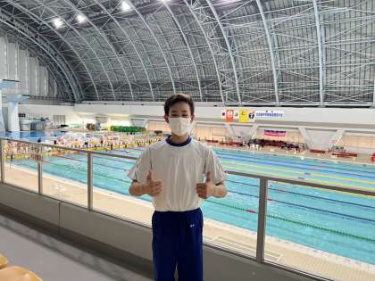 北信越大会に出場する水泳部の選手は、無事会場に到着しました。