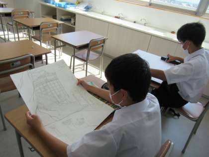 美術部は、キャンバス上に描き始めています。