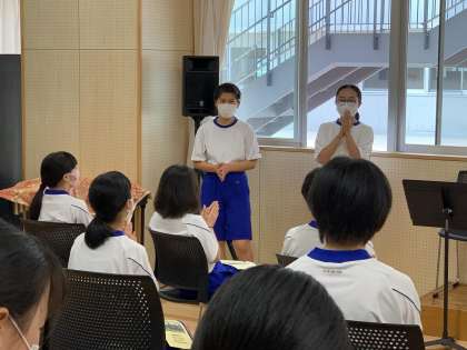 今日で3年生が引退しました。2人という少ない人数でしたが、いつも部員のことを見守り、優しく声かけをしてくれて吹奏楽部にとってはかけがえのない存在でした。