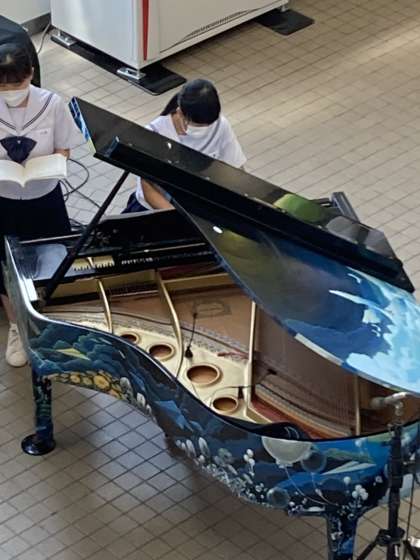 旧八尾中学校にあったグランドピアノが、きときと空港へ引っ越しし、ペインティングされました。今日は記念演奏会が行われました。