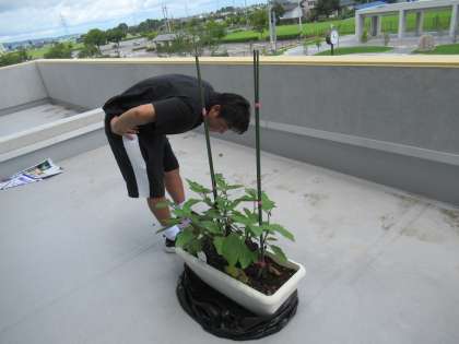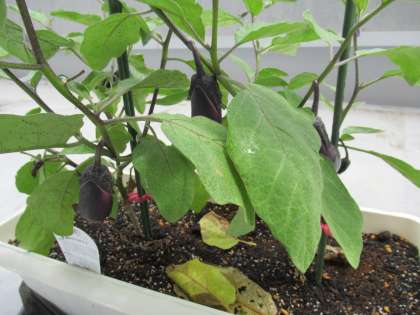 一番心配していた「ナス」が実を付けました。用務員さんのご指導・ご協力の賜です。