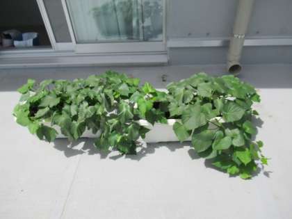 サツマイモの葉も大きく、蔓を伸ばしています。