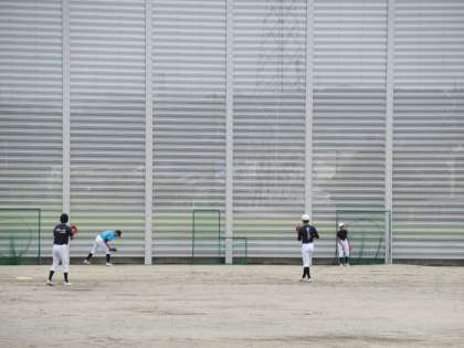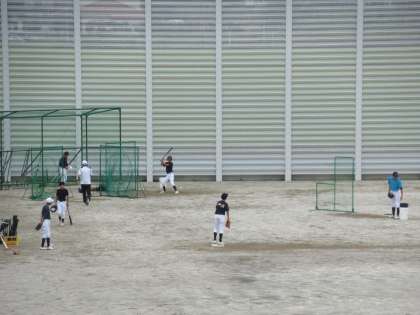 雨も上がり、グラウンドで練習をしています。まずは、キャッチボールから。
