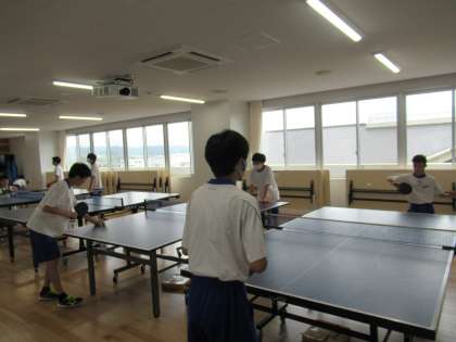 卓球部は、集会室という快適な広い空間で練習に励んでいます。