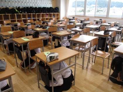 放送の指示に従って、全員机の下に入り、机の脚を手で握り、じっと動かずに待機しました。