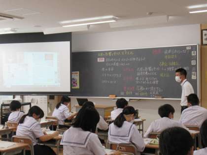 1〜3時間めは休み明けテスト、4限めは集会だったので、5限めは2学期の初授業です。写真は、社会科の授業の様子です。