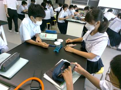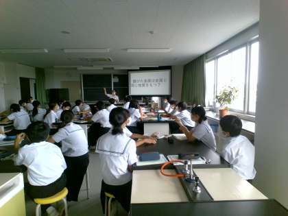 さすが理科の先生、自然や魚の写真が多くあり、生徒たちも興味津々です。