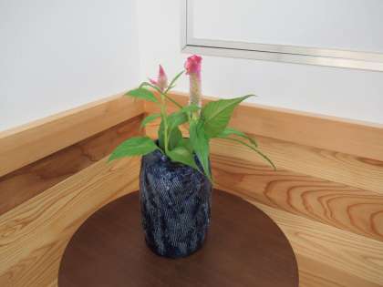 写真の花は、「鶏頭(けいとう)」です。夏から秋にかけ、赤・桃色・黄色などの花穂ができる花です。その形がニワトリの鶏冠(とさか)に似ていることからこの名がついたそうです。