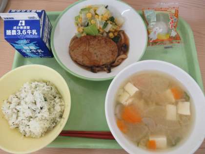 さつま汁の中の黄色いサツマイモもお月様を思わせます。月見大福のデザート付きです。