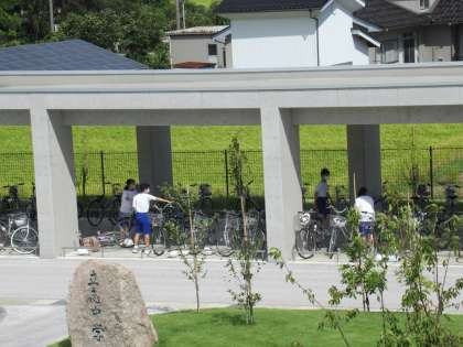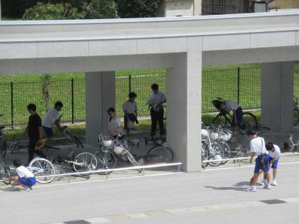 昼休みに生徒たちが、倒れた自転車を起こしてくれています。