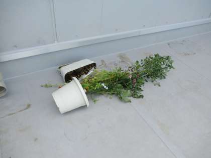 若手の先生方が大切に育てている植物も風で倒れてしまいました。すぐに校舎内に避難させました。