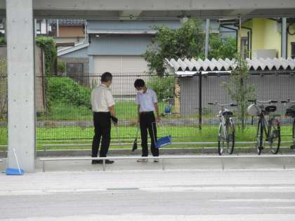 台風11号が去った朝です。落ち葉がたくさんあるため、朝からボランティア清掃をしてくれている生徒がいます。