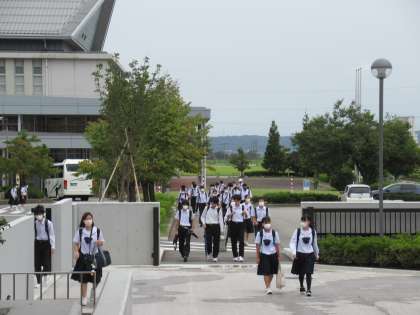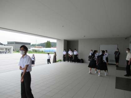 曇り空の朝です。生徒会執行部は挨拶運動をしています。1学期よりも元気のよい挨拶が増えています。