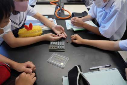ほとんどの生徒が金属の大きさが同じでも質量が違う(密度が違う)ことに気付きました。次回は金属の密度を測定しましょうね。