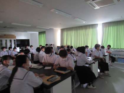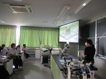 葉の細胞を見ながら、葉のつくりや働きを確認しています。