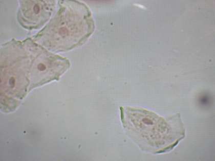 葉の細胞の次は、人の細胞を観察しています。