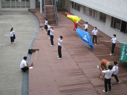生徒会応援団が新人大会の壮行会に向けて練習をしています。