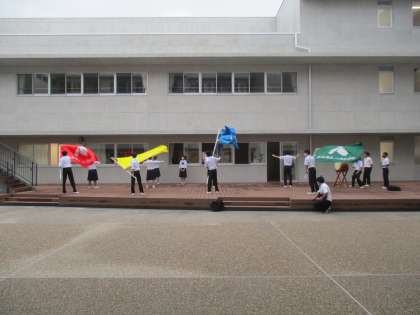 後輩たちへの熱い想いをエールに込めて、大きな声で頑張っています。