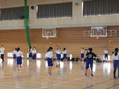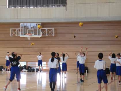 新人大会に向けて頑張っています。 パスの練習中です。