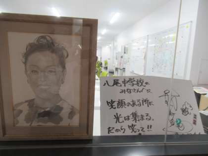 職員室前の柴田理恵さんコーナーにしばらく展示した後、柴田理恵さんにプレゼントします。