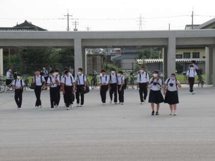 3・4時間目は、グラウンドで体育大会の練習です。初めての全体練習です。