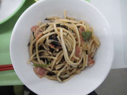 5 ベーコンとひじきの和風スパゲッティ