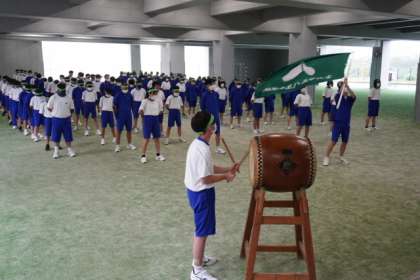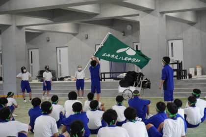 旗手のキレのある演技を生徒たちは真剣に見ていました。