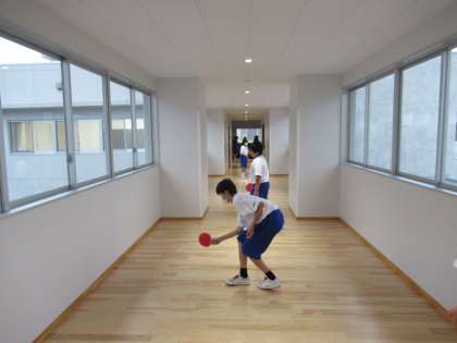 集会室だけでなく、広い廊下も卓球部のよい練習の場所となっています。