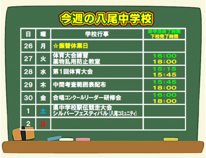 先週は天候に恵まれませんでしたが、今週こそ晴れのよい天候になりますように。