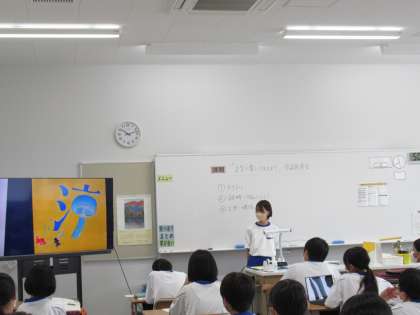 漢字をイメージを基に、楽しくデザインし、描きました。今日は、発表会です。
