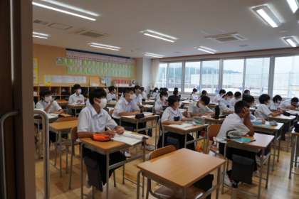 世界の人口が1分で156人増えていることを知り、生徒たちは驚いていました。