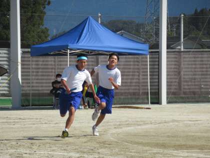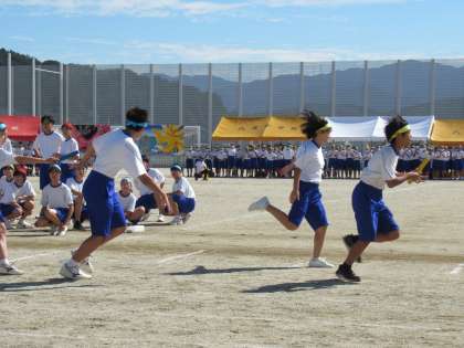 1年生女子から1年生男子、1年生男子から2年生女子、2年生女子から2年生男子、2年生男子から3年生女子、そして3年生女子から3年生男子へとバトンが渡されていきます。