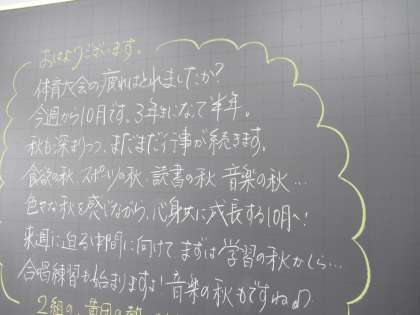 体育大会の次は、合唱コンクール。担任の先生からの週明け黒板メッセージでも話題になっています。