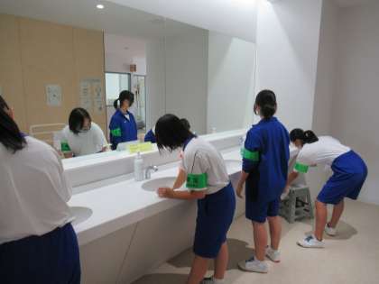 勤務先が急遽休みになった生徒や本日定休日の勤務先の生徒は、校内で用務員さんの下で体験中です。