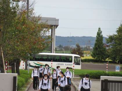風が強い中、元気に生徒が登校してきました。2年生が14歳の挑戦のため、1・3年生だけの学校です。