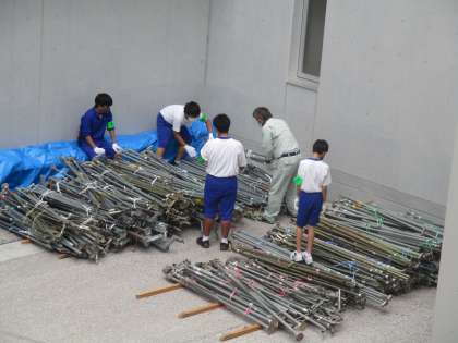 体育大会で使ったテントの片付けを手伝っています。助かります!