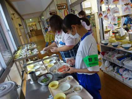 給食の準備を行ったり、準備を待っている子供たちに絵本の読み聞かせを行ったりしています。