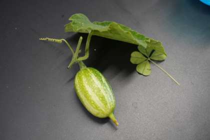 生徒が、下校中に見つけた小さなキュウリを持ってきてくれました。
